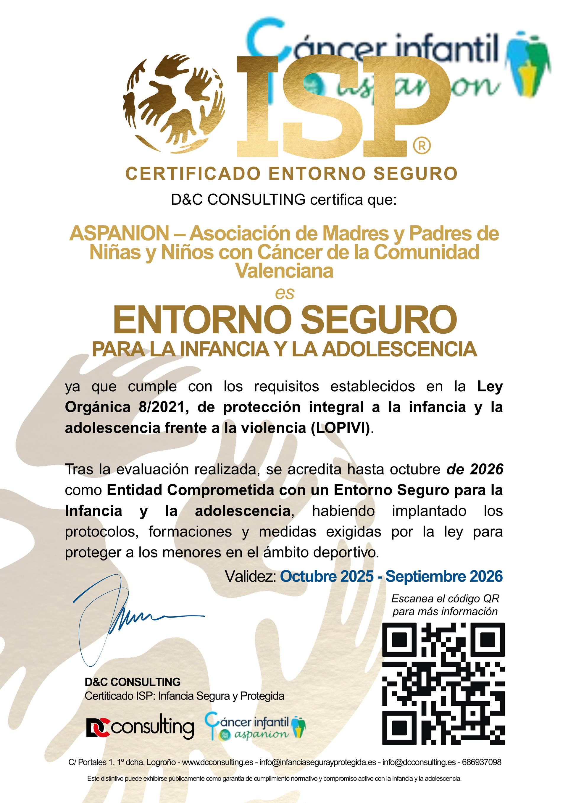 Este Certificado de Conformidad LOPIVI (ID: LOP-ASP-2426) se emite exclusivamente a favor de la ASPANION y es personal e intransferible.